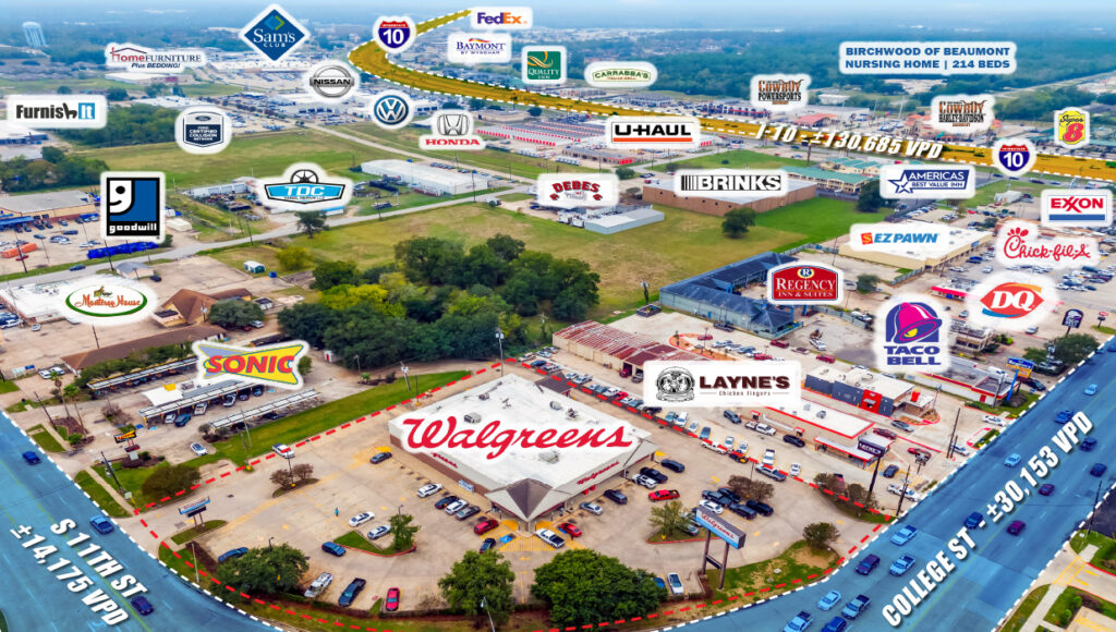 Pharma Property Group is pleased to market for sale the Walgreens property located at 3605 College St in Beaumont, Texas (the "Property"). Walgreens has agreed to a new 15-year absolute net lease with no landlord responsibilities. The lease includes 5% rental increases every 5 years in the initial term and in each of the 12 (5-year) options. This store and pharmacy are open 24 hours and Walgreens is reporting outstanding frontend sales volumes.