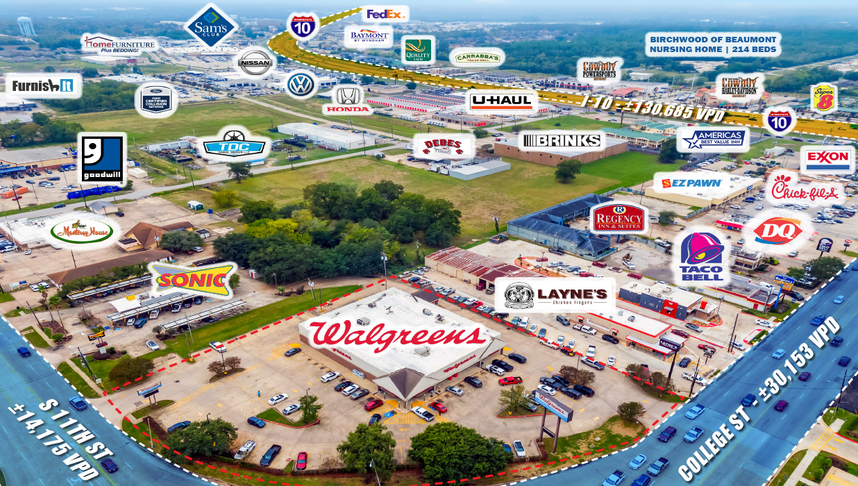 The Property is located strategically off Interstate 10 (±135,000 VPD) in the dense retail corridor of Central Beaumont on a signalized intersection with approximately 44,328 vehicles per day.