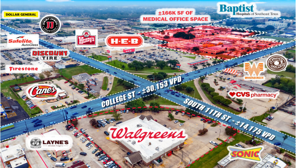 The Property sits in Beaumont's main medical corridor and is 1.5 miles of Baptist Hospitals of Southeast Texas and Christus Southeast Texas - St Elizabeth Hospital, which combined have ±840 beds, ±2500 employees, and serve the entire greater Beaumont market.