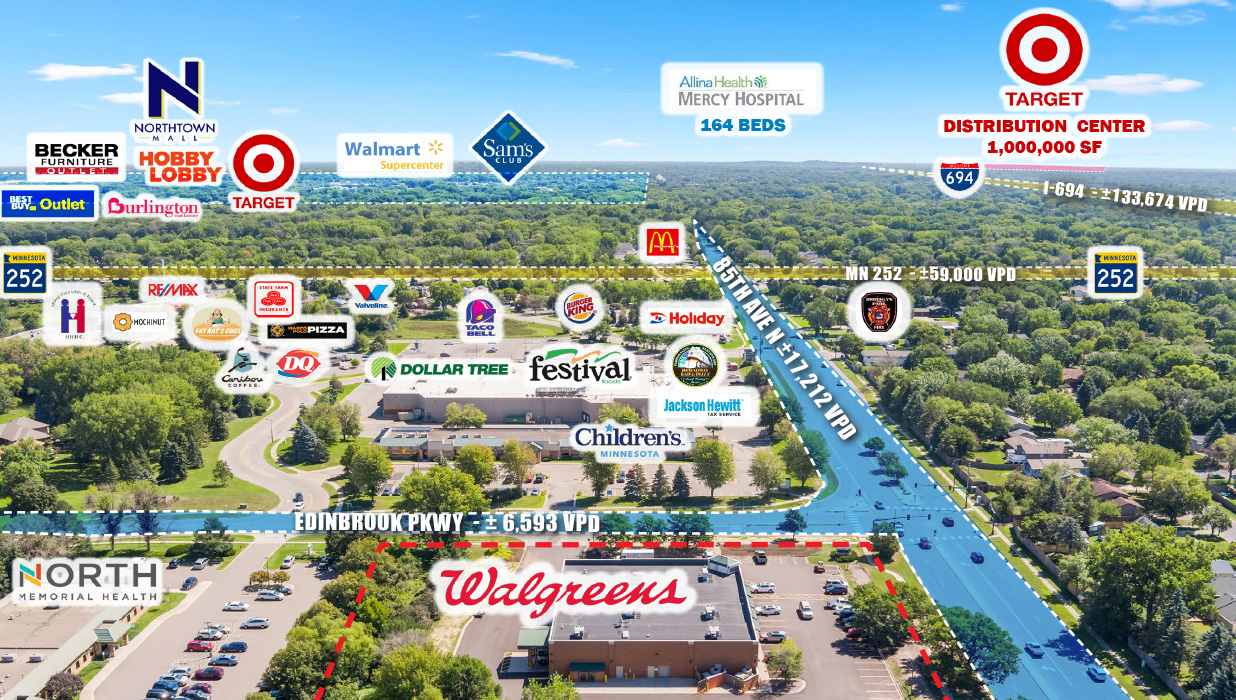 The Property has exceptionally high reported sales volumes and in 2020 Walgreens extended the lease to a firm 15 years before the next option period showing commitment to the location. The Property is located in Brooklyn Park, an affluent neighborhood 10 minutes north of Minneapolis, with median household incomes of $96,000 in a 1-mile radius and within a 5-mile radius of the Property there are over 250,000 residents.