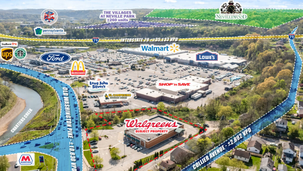 The Property benefits from being just 8 miles from downtown Pittsburgh in a dense and affluent residential area. There are over 82,000 residents in a 3-mile radius that supports an average household income of $107,000. Located adjacent to Interstate 79, the Property is accessible to the 50,000+ vehicles per day commuting into downtown Pittsburg for work and recreation.