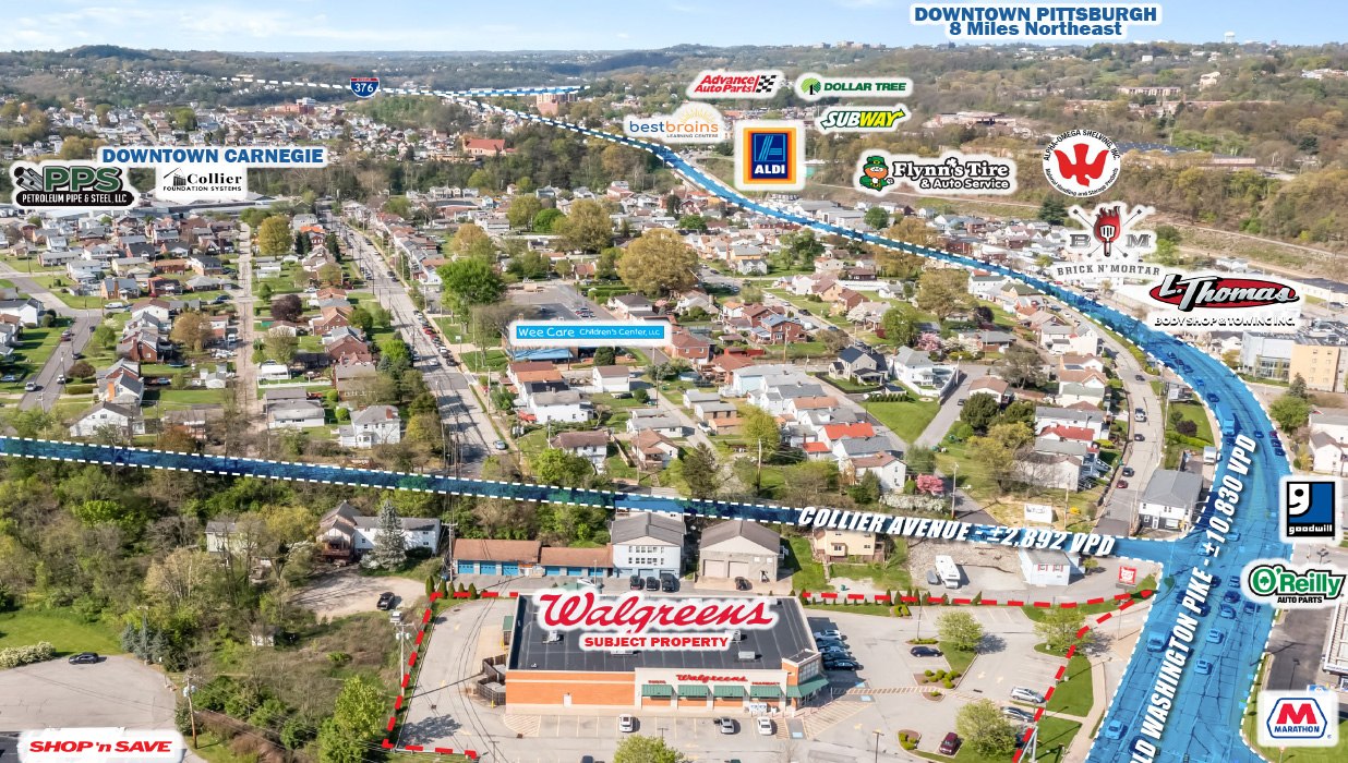 We are pleased to market for sale the Walgreens property located at 2055 Old Washington Pike in Carnegie, Pennsylvania ("The Property"). Walgreens has been successfully operating at this location for 16 years and has 9 years of firm term remaining before 10 (5-year) option periods on an absolute net lease with no landlord obligations whatsoever.