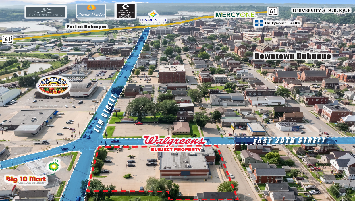 • MercyOne Dubuque Medical Center (263 Beds - 1,500 Employees) and UnityPoint Health-Finley Hospital (126 Beds - 940 Employees) are both located within a 2-mile radius from the Walgreens location.