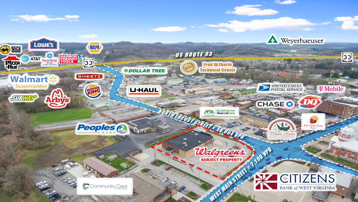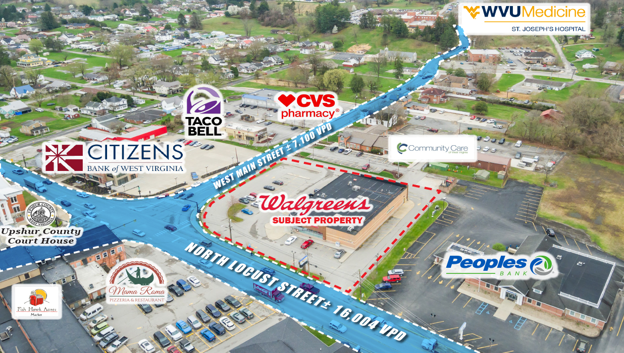 The Property is uniquely positioned as the only Walgreens in Buckhannon, with the next nearest location over 15 miles away, making it a critical provider of pharmacy services to the surrounding community. Strategically located less than half a mile from St. Joseph's Hospital, the area's only Level IV trauma center, the Property benefits from a healthy customer base driven by 24/7 emergency and healthcare services.