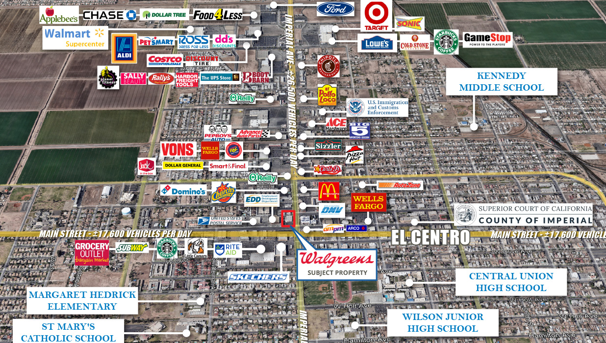 - Only Walgreens in El Centro and Located at a Strategic Corner with Rite Aid Directly Across the Street Strong Agricultural and Cross-Border Employment/Economic Activity