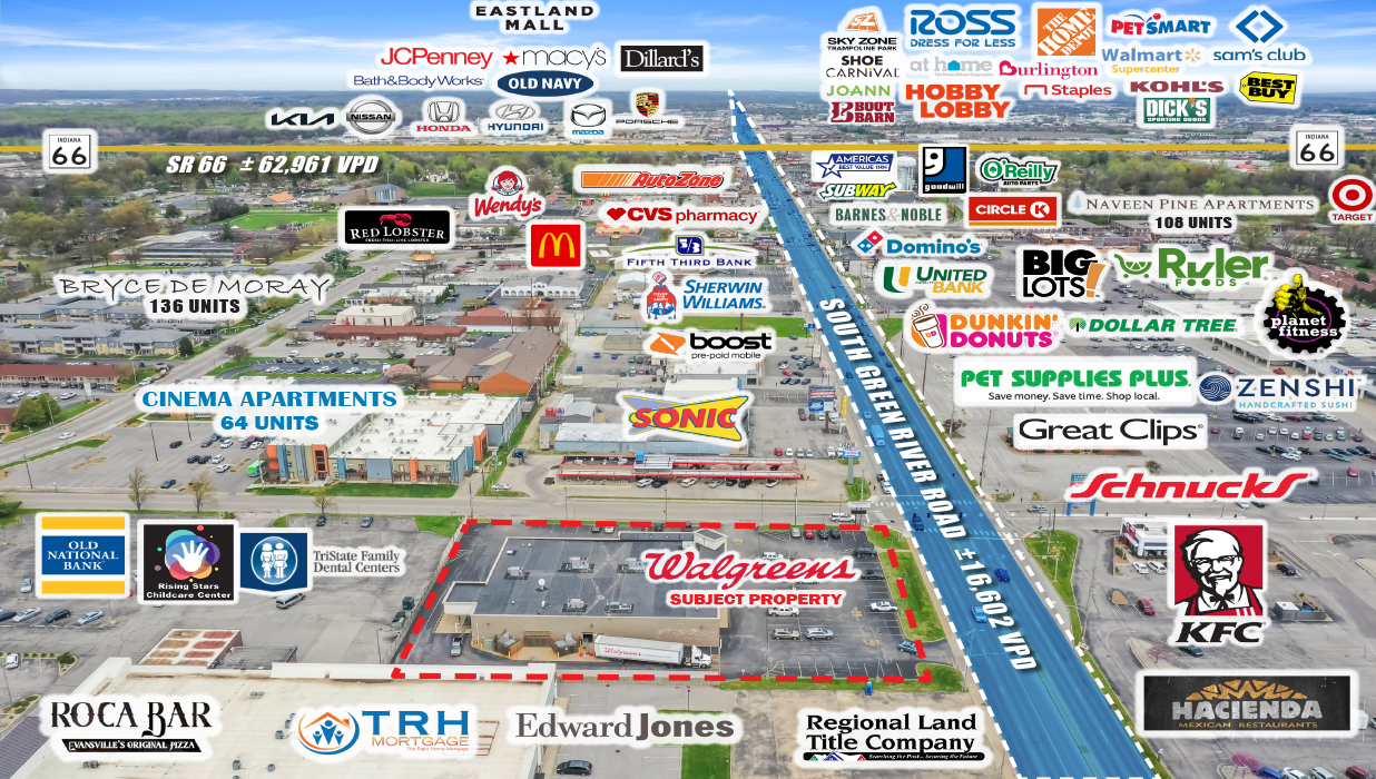 We are pleased to market for sale the Walgreens property located at 925 South Green River Road, Evansville, IN 47715 (the “Property”). The current lease term runs through November 30, 2029, with twelve (5-year) renewal options. Walgreens operates under a absolute net lease, which provides for no landlord obligations whatsoever and calls for rental increases every 5 years for the first four options.