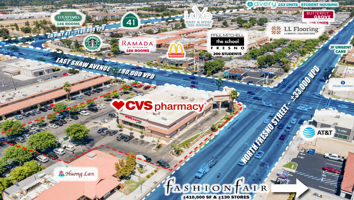 The Asset is located directly across from the 410,500 square foot Fashion Fair Mall anchored by Macy’s and JC Penny’s. This is a highly trafficked intersection in the main retail corridor of Fresno with a combined traffic count of over 113,000 vehicles per day. There is approximately 31 million square feet of retail space within a 5-mile radius. Located just three miles northeast of the Asset is St. Agnes Medical Center medical Center, a 384 full service hospital with approximately 2,000 medical and support staff.