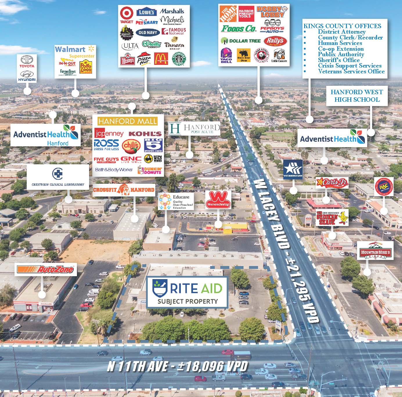 Pharma Property Group is pleased to market for sale the Rite Aid located at 707 West Lacey Boulevard in Hanford, California ("The Property"). Rite Aid has been operating at this Kings County site for 18+ years and in 2022 Rite Aid added 10 more years of firm term to the original lease showing commitment to the location. The Rite Aid lease now has over 12 years remaining on the lease term and 6 (5-year) options to extend with 10% increases in the first, third and fifth option periods.