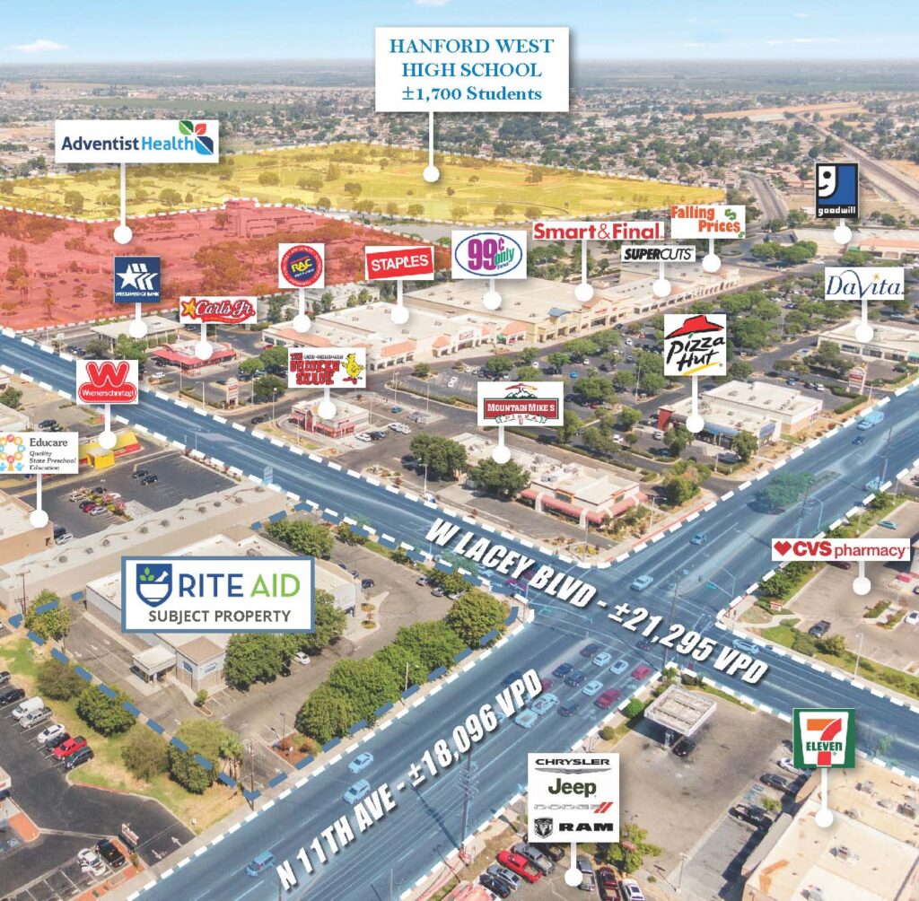 Pharma Property Group is pleased to market for sale the Rite Aid located at 707 West Lacey Boulevard in Hanford, California ("The Property"). Rite Aid has been operating at this Kings County site for 18+ years and in 2022 Rite Aid added 10 more years of firm term to the original lease showing commitment to the location. The Rite Aid lease now has over 12 years remaining on the lease term and 6 (5-year) options to extend with 10% increases in the first, third and fifth option periods.