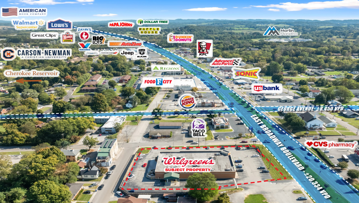 - Walgreens benefits from being located in a 964,000 SF retail corridor with nearby national tenants such as Tractor Supply Co., CVS, Walmart Supercenter, Lowes, Dollar General, O'Reilly, Advance Auto Parts, and Food City.