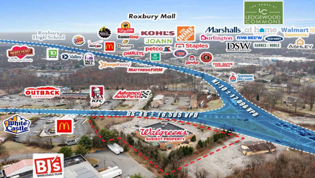 With many residents in the Ledgewood community commuting into NYC for work/leisure, the Property is situated at the crossroads of US-46 and NJ-10 with close proximity to the Christopher Columbus Highway interchange (I-80), providing access to NYC with over 114,000 vehicles per day.