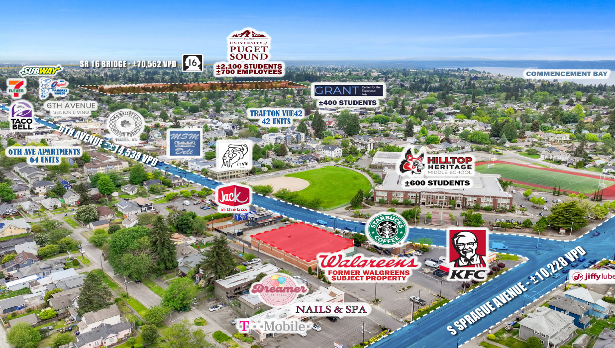 We are pleased to present the Walgreens property located at 2024 6th Ave in Tacoma, Washington (“The Property”) for sale. This vacant commercial property has a guaranteed lease term of over 11 years with a remaining income of $6,500,000 from its lease with Walgreens. This opportunity offers high-yield cash flow for the next decade, allowing owner-users or investors to assess future development opportunities.