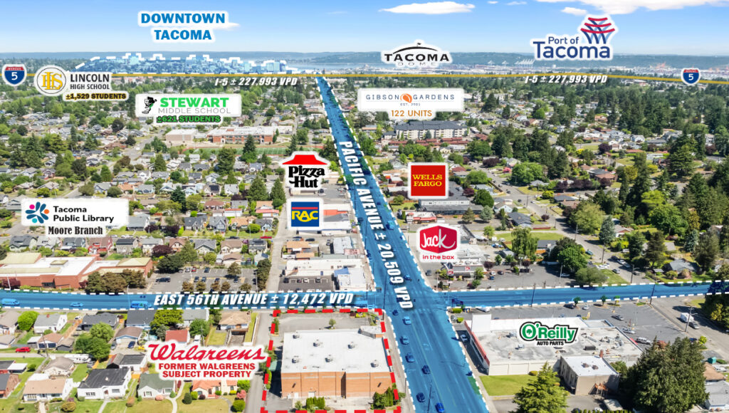 We are pleased to present for sale the former Walgreens property located at 5602 Pacific Avenue, Tacoma, WA 98408 (the “Property”). The building consists of approximately 14,000 square feet, including a 4,000 square foot mezzanine, and is currently under an absolute net lease through September 30, 2030, with zero landlord responsibilities.