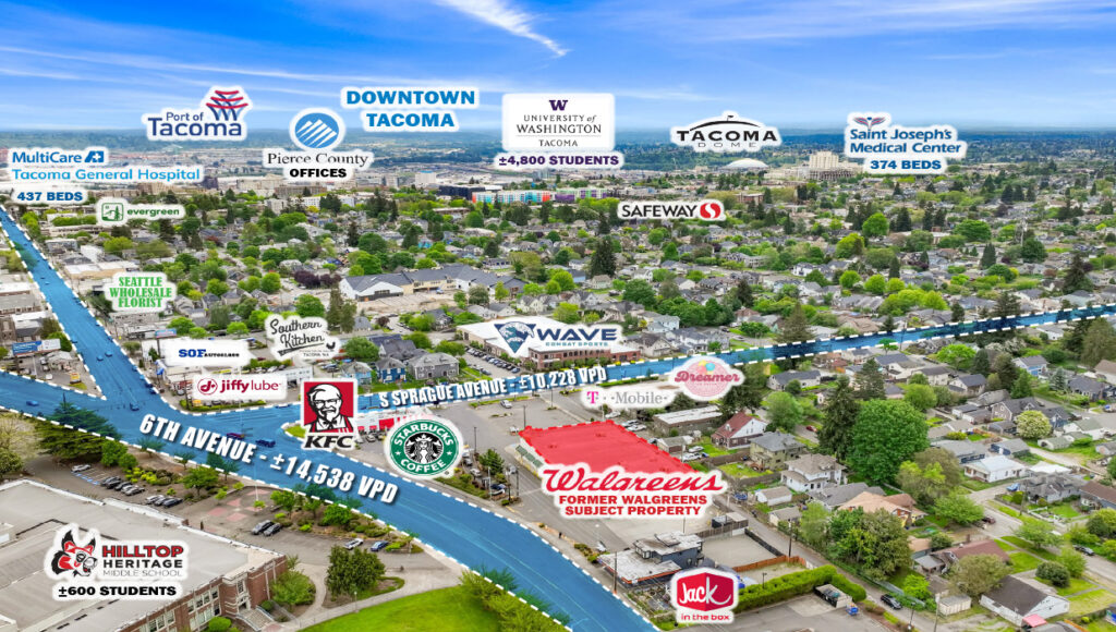 We are pleased to present the Walgreens property located at 2024 6th Ave in Tacoma, Washington (“The Property”) for sale. This vacant commercial property has a guaranteed lease term of over 11 years with a remaining income of $6,500,000 from its lease with Walgreens. This opportunity offers high-yield cash flow for the next decade, allowing owner-users or investors to assess future development opportunities.
