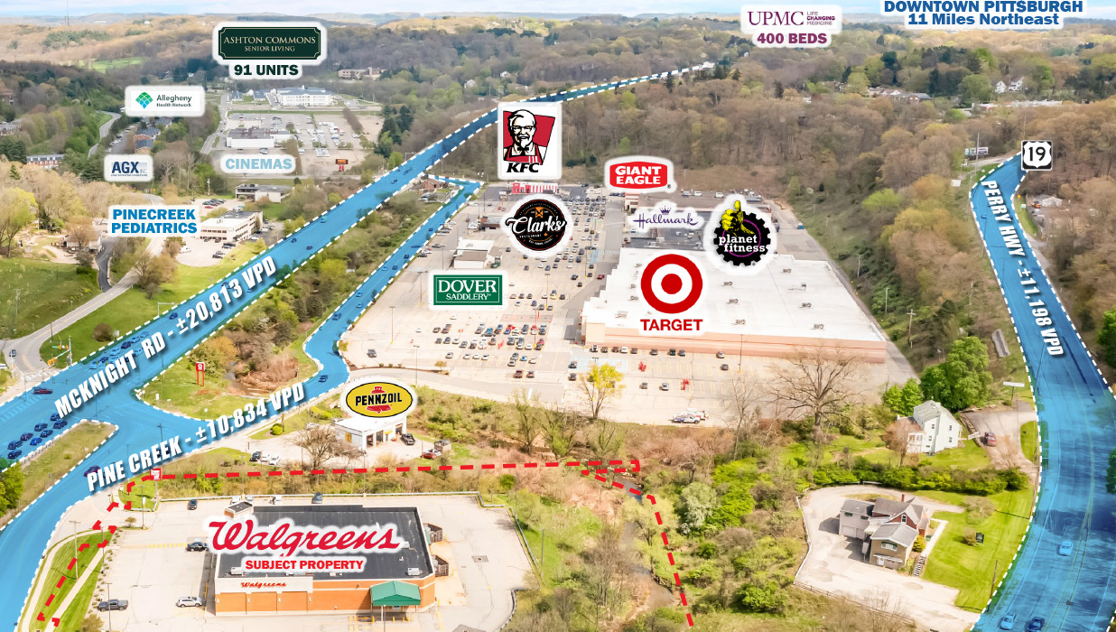 The Property sits adjacent to the Pine Creek Shopping Center anchored by Target, Giant Eagle Supermarket, and Planet Fitness and benefits from the center's highly visible location off US Highway 19 (21,000 VPD). Situated in a 3-mile radius with over 4.3 million square feet of retail space, the Property sees consumer spending from a larger trade radius.